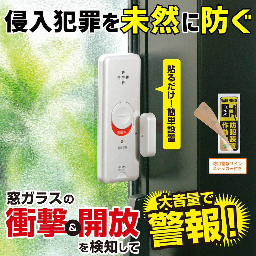 エルパ 窓ピタッアラーム 衝撃&開放検知 パールホワイト 2個